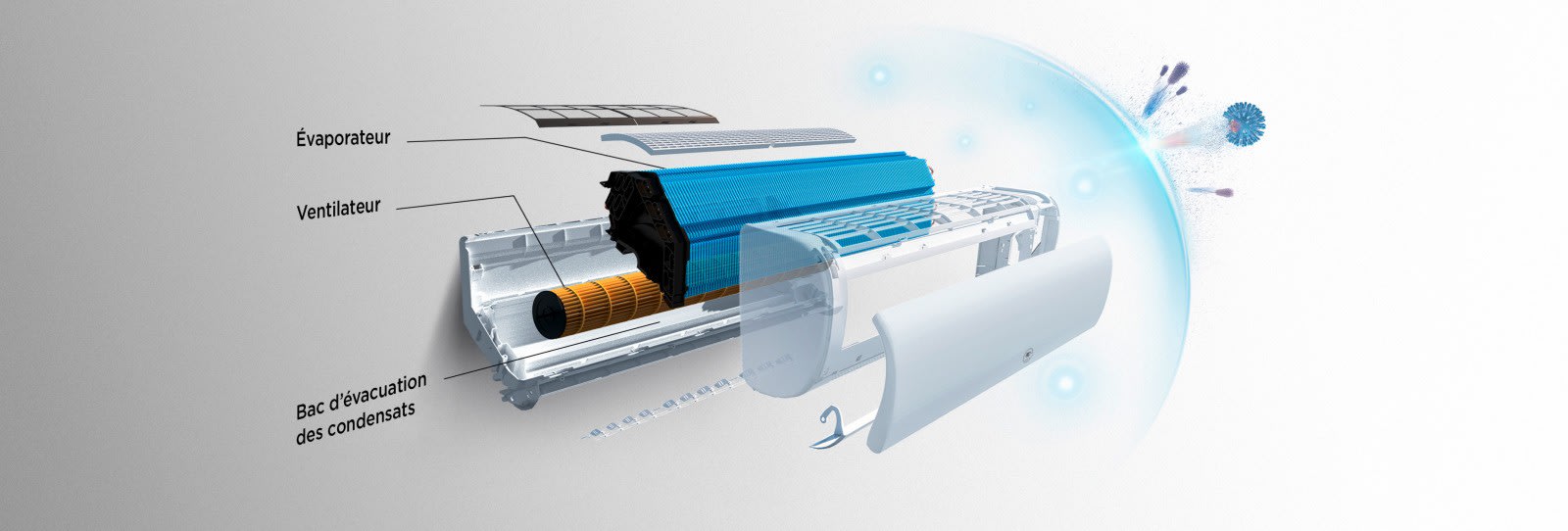Pilotage à distance grâce à l'application Intelligent AirDesign moderne disponible en deux coloris : blanc et gris anthraciteDe nouvelles fonctionnalités (Ifeel et Selfclean) pour assurer plus de confort et une plus grande longévitéCertifié "Eurovent" ce qui garantit la qualité des pompes à chaleur et leurs niveaux de performancesSolution 3 en 1 : chauffage, rafraichissement et purification de l'airSystème auto-clean et revêtement anti-bactérien pour détruire bactéries et virus et diffuser un air sain au contact de l’air