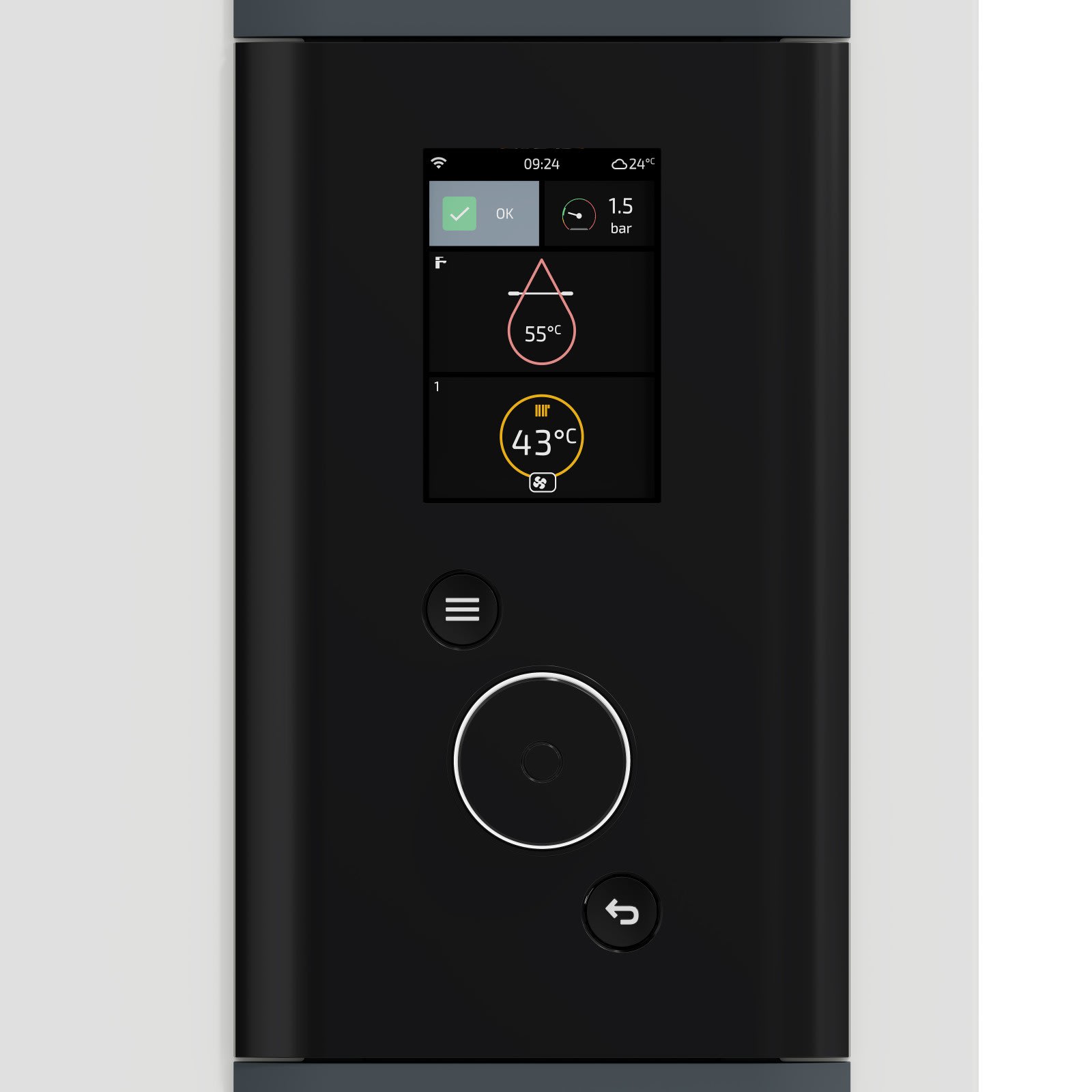 Classe énergétique 55°C : A++ ETAS 35°C sans sonde extérieure : 175% ETAS 55°C sans sonde extérieure : 125% SCOP 55°C : 3,20 COP -7/55°C : 1,85 Classe énergétique ECS : A+ Profil de soutirage : L Fluide R32 Échangeur coaxial pour plus de longévité Régulation smart adapt avec thermostat d'ambiance Certifié HP Keymark