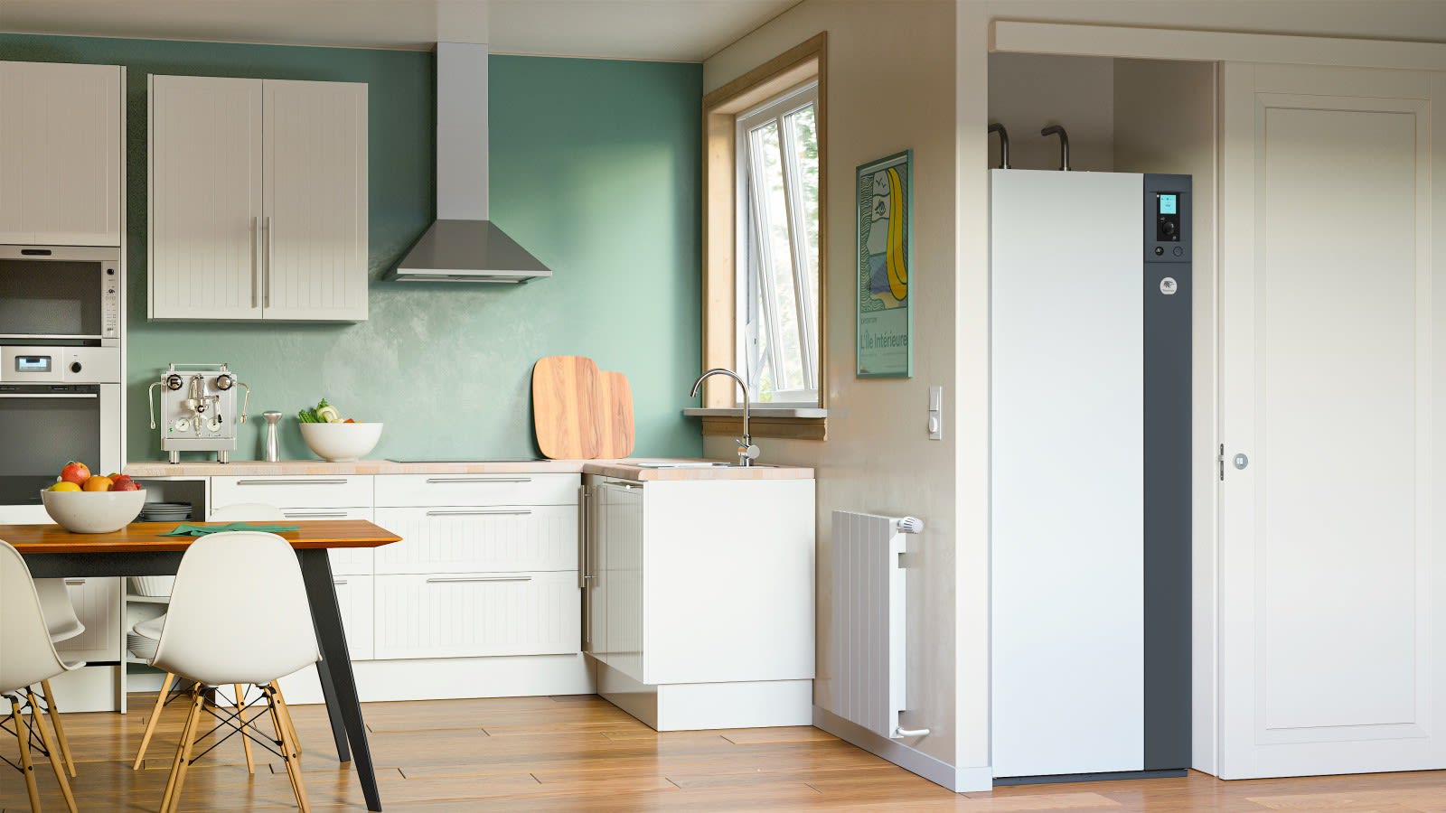 Option kit rafraichissement (uniquement avec plancher chauffant/rafraîchissant ou radiateurs dynamiques réversibles)Technologie Inverter qui permet d'optimiser la durée de vie de l'appareilÉchangeur coaxial breveté : une technologie plus robuste que les échangeurs traditionnels à plaquesSCOP 35°C = 4,25 SCOP 55°C = 3,21Classe énergétique A++ en chauffage (35°C/55°C) - Classe énergétique A en ECS