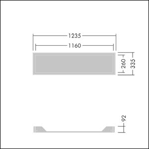 Cadre pour fixer un luminaire Beta 3 "E3S / E3DS" 1196 x 296 mm dans un plafond en plâtre 5- 30 mm d’épaisseur. Pour les versions d’éclairage d’urgence, cet accessoire peut UNIQUEMENT être utilisé avc les variantes se terminant en.Découpe : 1210 x 310 mm.Poids : 2,5 kg