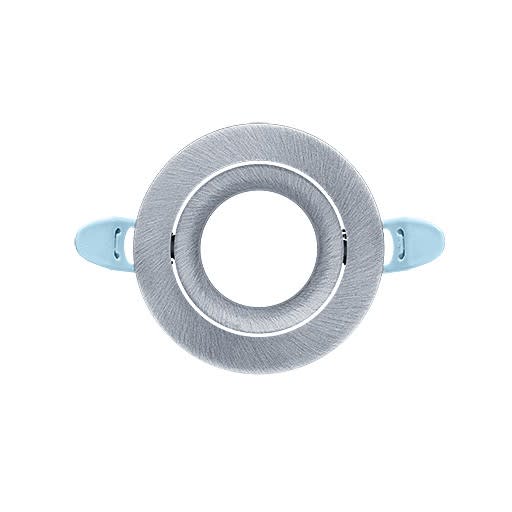Garniture ronde ajustable argent mat, pour module d'éclairage des downlights LILY. Matériel : fonderie d'aluminium. Dimensions : Ø68 x 25 mm, poids : 0,08 kg.