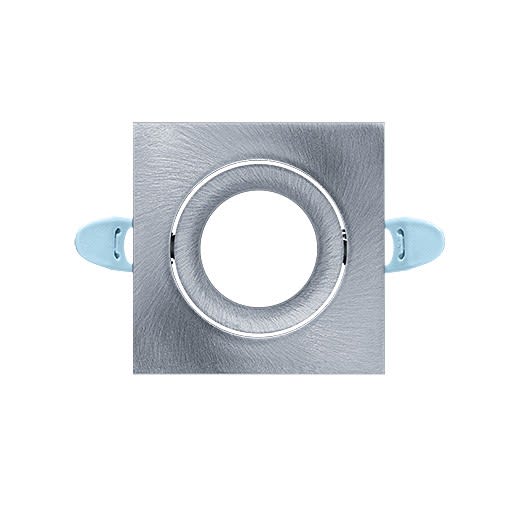 Garniture argent réglable, carrée et matte pour le module light engine du downlight LILY. Matériau : fonderie d'aluminium. Dimensions : 82 x 82 x 25 mm, poids : 0,09 kg