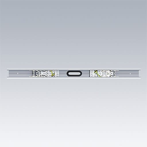 Alimentation électrique centrale L750 en blanc fabriquée de tôle d’acier rouler-formé pour un raccord électrique central ou une distribution de charge centrale de la rangée continue. 2 jeux avec bornes de raccordement enfichables pour 5 lignes d’alimentation secteur, 2 x 2 conducteurs d’éclairage de secours et 2 lignes de contrôle. Protection tactile pour la partie conductrice de courant. L’alimentation centrale Contus peut être couverte avec les extrémités des deux luminaires Contus qui ont une longueur d’au moins 1000 mm ou avec des bandes de recouvrement. L’unité d’alimentation centrale est livrée avec deux embouts de goulotte.Dimensions : 750 x 60 x 54 mmPoids : 1,45 kg