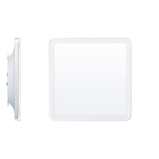 Applique à LED (carré), ultraplat avec convertisseur intégré ; concept de luminaire à LED modulaire ; vasque en Polyméhylméhacrylate (PMMA), transparent avec répartition asymétrique de la lumière ; lampe : 1 LED1000-930 20 W ; Rendu des couleurs Ra > 90, température de couleur 3000 K (blanc chaud) ; Tolérance de la couleur (MacAdam intial): 3 ; Flux lumineux du luminaire: 1100 lm, Efficacité lumineuse du luminaire: 55 lm/W. Durée de vie : 50000 h avec diminution du flux lumineux à 80 % ; boîtier de commande : convertisseur à LED. Platine apparente en fonderie d'aluminium ; corps du luminaire comprenant un caisson, une vasque et un cadre de recouvrement. Corps en fonderie d'aluminium, argent mat laqué ; cadre de recouvrement en Polycarbonate (PC), blanc laqué ; montage rapide, sans outil du corps du luminaire par clips de retenue et verrous de sécurité complémentaires ; Bornier tripolaire à enfichage, possibilité de repiquage ; Puissance du luminaire: 20 W ; tension d'alimentation : 220-240 V/ 50/60 Hz ; classe de protection I ; luminaire à filerie exempte d'halogène ; dimensions : 331 x 331 x 57 mm ; poids : 3,5 kg