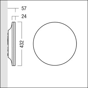 Applique et plafonnier à LED (rond), ultraplat avec convertisseur intégré ; concept de luminaire à LED modulaire ; vasque en Polyméhylméhacrylate (PMMA), opale avec répartition symétrique de la lumière, suivant la loi de Lambert ; lampe : 1 LED2400-927 43 W ; Rendu des couleurs Ra > 90, température de couleur 2700 K (blanc chaud) ; Tolérance de la couleur (MacAdam intial): 3 ; Flux lumineux du luminaire: 2400 lm, Efficacité lumineuse du luminaire: 56 lm/W. Durée de vie : 50000 h avec diminution du flux lumineux à 70 % ; boîtier de commande : convertisseur à LED. Platine apparente en fonderie d'aluminium ; corps du luminaire comprenant un caisson, une vasque et une collerette. Corps en fonderie d'aluminium, blanc mat laqué ; collerette en Polycarbonate (PC), blanc ; montage rapide, sans outil du corps du luminaire par clips de retenue et verrous de sécurité complémentaires ; Bornier tripolaire à enfichage, possibilité de repiquage (uniquement applique et plafonnier) ; Puissance du luminaire: 43 W ; tension d'alimentation : 220-240 V/ 50/60 Hz ; classe de protection I ; luminaire à filerie exempte d'halogène (uniquement applique et plafonnier) ; Dimensions : Ø432 x 57 mm ; poids : 4,9 kg.Note : version suspendue sur demande (configurable via myCAELA). Corps du luminaire orientable sur 355° dans le plan horizontal et sur ±30° dans le plan vertical ; branchement : connecteur enfichable à 5 pôles ; degré de protection IP20 ; tige de suspension à mettre à longueur sur site (à commander séparément).