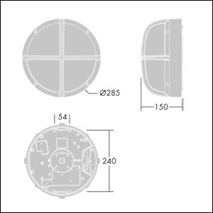 Hublot LED ronds et résistants aux impacts. Electronique, non gradable. Classe électrique I, IP65, IK10. Corps : taille Small, aluminium fonderie (LM6), anthracite thermopoudré. Diffuseur : Polycarbonate (PC) opale avec collerette aluminium fonderie. Connexion électrique par bornier 3 P 2 x 2,5 mm². Avec détecteur de mouvement intégré pour un contrôle marche/arrêt. Livré avec LED 4 000 KDimensions : Ø285 x 150 mmPuissance du luminaire: 11 WPoids : 2,4 kg
