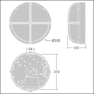 Hublot LED ronds et résistants aux impacts. Electronique, non gradable. Classe électrique I, IP65, IK10. Corps : taille Large, aluminium fonderie (LM6), anthracite thermopoudré. Diffuseur : Polycarbonate (PC) opale avec croix aluminium fonderie. Connexion électrique par bornier 3 P 2 x 2,5 mm². Livré avec LED 3 000 KDimensions : Ø340 x 155 mmPuissance du luminaire: 11 WPoids : 3,5 kg