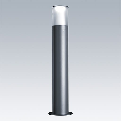 Borne LED intemporelle. Electronique, non gradable. Classe électrique II, IP65. Tête et corps : aluminium thermopoudré gris 900. Diffuseur : Polycarbonate (PC) anti-UV semi-opale. Montage sur semelle recevant 4 tiges de scellement. Livré avec LED 3 000 KDimensions : Ø150 x 1000 mmPuissance du luminaire: 14 WPoids : 5,45 kg