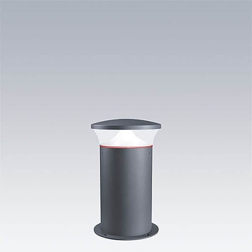 Borne de faible épaisseur, élégante et anti-vandalisme Radialement symétrique avec optique de haute performance. Pour Electronique, non gradable. Classe électrique IP66 lI. Mât et socle : aluminium (EW AW 6060). Chapeau : aluminium fonderie (EN AC 47100). Diffuseur : Polycarbonate (PC) transparent anti-UV. Boîtier appareillage : Polycarbonate (PC). Couleur du chapeau et mât : gris anthracite 900 sablé thermopoudré (similaire à RAL7043). Luminaire pré-câblé et prêt à installer. Boîtier de connexion nécessaire, à commander séparément. Livré avec LED 4 000 K Fixation sur semelle : 4 x tiges de scellement M14 (à commander séparément), espacement : 200 mmDimensions : 250 x 250 x 541 mmPuissance du luminaire: 11 WPoids : 9 kg