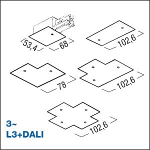 Cache pour alimentation médiane Triphasé / L3+DALI, en tôle d'acier, noir thermolaquée ; nécessaire sur rails triphasés/ L3+DALI avec profil d'appui ; dimensions : 103 x 54 x 1 mm