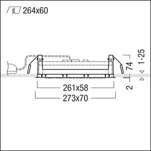 Cadre d´installation avec cadre de recouvrement ; sert à la réception du plafonnier encastré à LED Synchro-Gimbal ; montage facile sans outil du plafonnier encastré à LED dans le cadre d'installation à l'aide de la technique d'encliquetage ; cadre enPolycarbonate (PC) noir, cadre de recouvrement noir ; montage au plafond sans outil du cadre d'installation à l'aide de clips de fixation pour plafonds de 1-25 mm d'épaisseur ; découpe du plafond : 264x60mm, profondeur d'encastrement minimale avec le plafonnier encastré à LED : 100mm + épaisseur de plafond ; dimensions du cadre : 273x70x76mm ; poids : 0,1 kg;Note : le plafonnier encastré à LED Synchro Gimbal doit être commandé séparément !