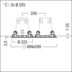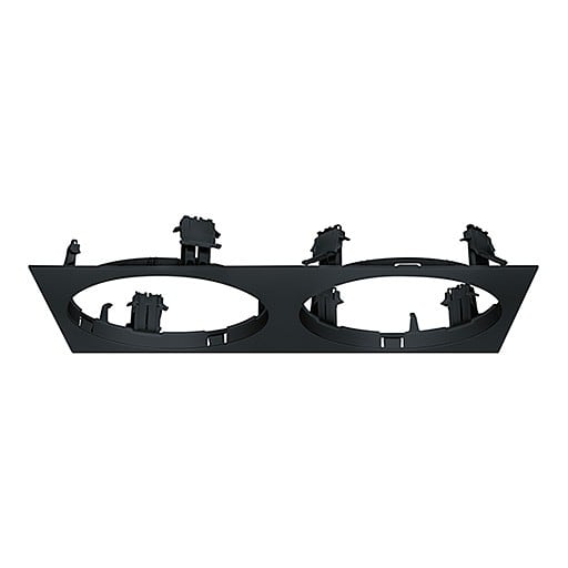 Cadre d'encastrement (double) sert de plateforme pour la combinaison flexible de deux modules d'éclairage d'accentuation à LED CARDAN evolution L ; montage simple sans outil du module par système d'encliquetage ; anneau en Polycarbonate (PC), renforcé aux fibres de verrenoir ; montage sans outil par clips de fixation antiglisse pour plafonds de 1-25 mm d'épaisseur ; découpe du plafond : 2xØ225, profondeur d'encastrement des modules d'éclairage d'accentuation à LED 270 mm ; dimensions de l'anneau : Øx68 mm ; poids : 0,33 kg;Note : démontage simple, intuitif des modules avec l'outil (60800854) à commander séparément !