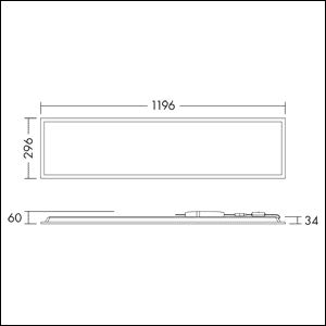 Panneau LED encastré UGR<19 avec couleur de température réglable de 3000K, 3500K ou 4000K via un interrupteur situé à l'arrière du luminaire. Éclairage doux et sans éblouissement pour les bureaux, avec un diffuseur opale en TpB, classifié PET pour un éclairage totalement homogène et cadre en aluminium. Puissance du luminaire: 34 W Autonomie de 50 000 H avant une réduction du flux lumineux à 80 % de la valeur initiale. Tolérance de la couleur (MacAdam intial): 4. Flux lumineux global: 4000 lm, Efficacité lumineuse du luminaire: 118 lm/W (4000K). Rendu des couleurs Ra > 80, installation sans outils (bornier à poussoir pour des fils jusqu’à 2,5 mm²). Connecteur/ driver externe pour un câblage avec repiquage. Flicker free. Adapté à une installation en assise, en suspension et en plafonnier. Produit recouvrable de matériaux isolants déroulés. Dimensions : 1200 x 300 x 60 mm poids : 2,2 kg