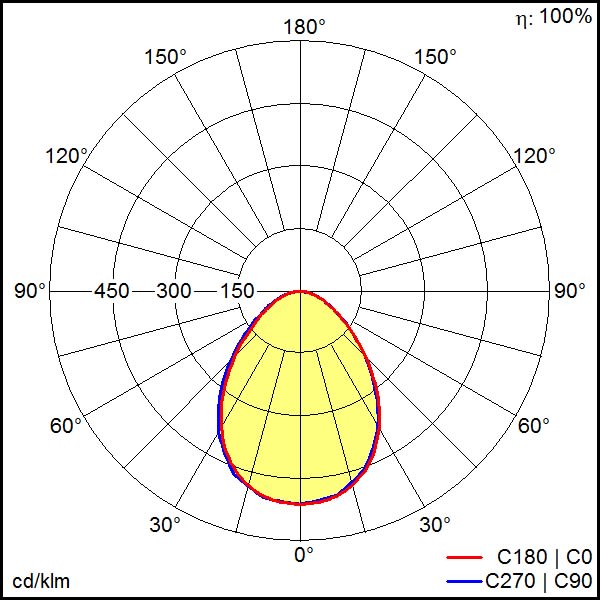 faible éblouissement selon EN 12464-1 (UGR < 19):