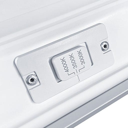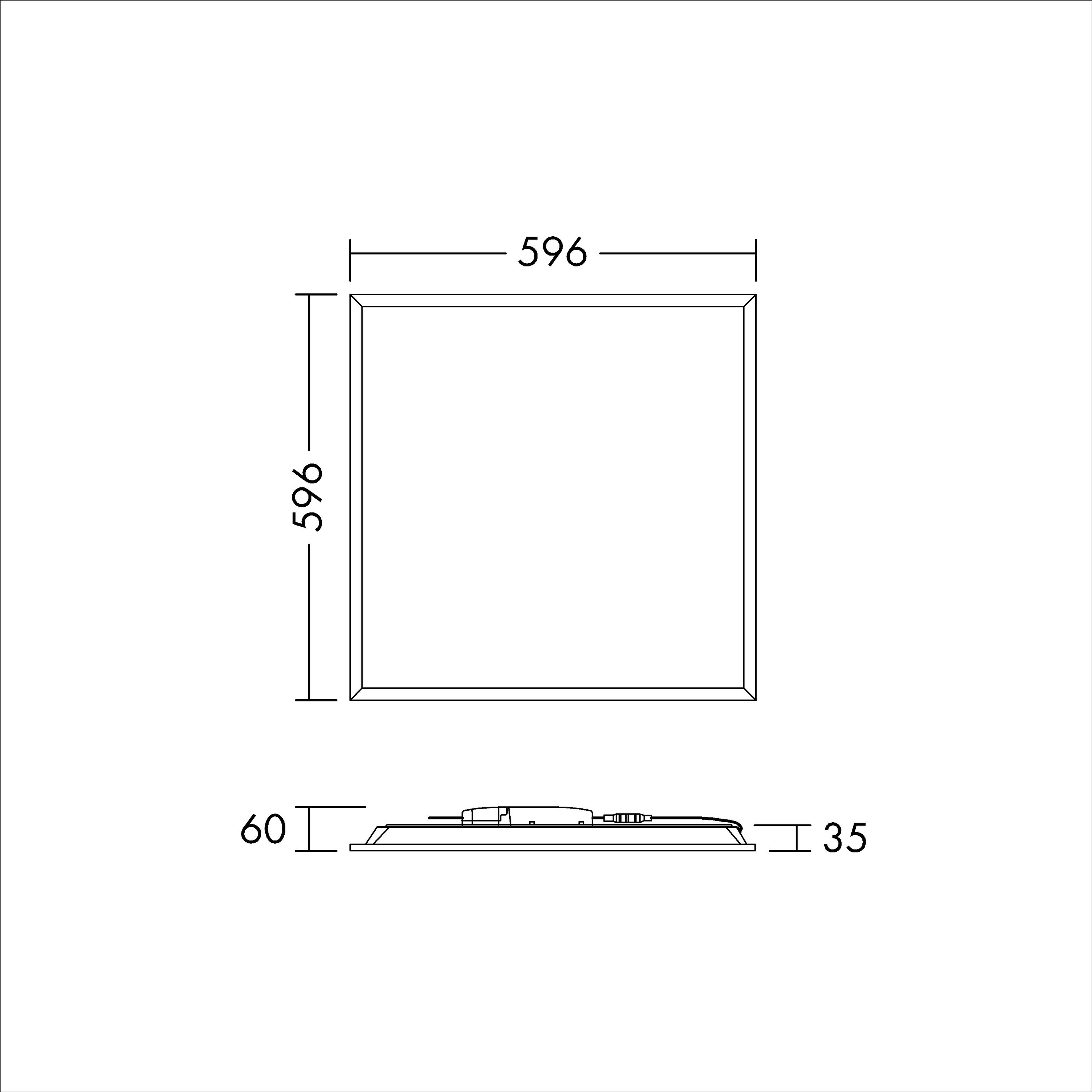 Dalle LED avec surface de diffusion uniforme à structure opale. La puissance lumineuse et la température de couleur sont faciles à ajuster grâce à un interrupteur situé sur le luminaire. Éclairage doux, tamisé et non éblouissant avec UGR < 19 pour les éco