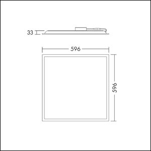 Dalle LED avec une surface de diffusion à microprismes. Éclairage confortable et non éblouissant avec UGR < 19 pour le remplacement direct des luminaires de bureau avec un facteur de forme de 600 x 600 mm. Flux lumineux global: 3500 lm. Puissance du lumin
