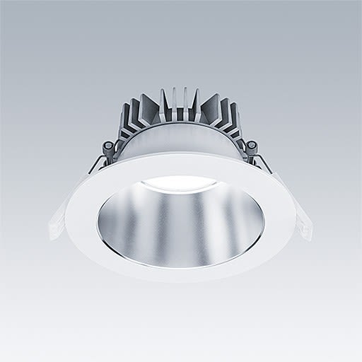 Downlight LED encastré de faible hauteur. Convient pour les découpes de plafond Ø145-180 mm dans des rénovations ou des installations neuves, simples et rapides. Driver LED Flux fixe détachable. Câblage avec repiquage possible. Corps : aluminium fonderie pour gestion thermique. Diffuseur : Polycarbonate (PC), réflecteur lisse en finition satiné avec faisceau large. Réflecteur : Polycarbonate (PC) de haute qualité et hautement réfléchissant. Classe électrique II, IP44_IP20. Clips à ressort pour des épaisseurs de plafond jusqu'à 35 mm. Équipé d’un câble 0,5 m (Eca) et d’une fiche Wieland à 3 pôles, de type GST18i3, noire. Livré avec LED 4 000 KDimensions : Ø195 x 100 mmPuissance du luminaire: 25,4 WFlux lumineux du luminaire: 3153 lmEfficacité lumineuse du luminaire: 124 lm/WPoids : 0,62 kg