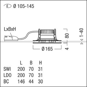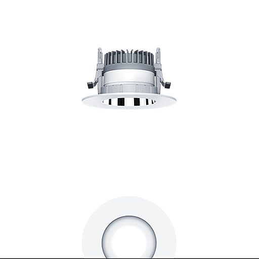 Plafonnier encastré à LED R100 (luminaire complet), avec une large collerette de luminaire, idéal pour un remplacement dans les larges découpes de plafond existantes avec une distribution lumineuse symétrique et extensive de la lumière (64 °), une efficacité maximale du luminaire, une technique d'éclairage downlight optimale ; une grande durabilité en raison d'une structure modulaire maximale continue et de composants échangeables. Module LED interchangeable, Rendu des couleurs Ra > 90 (R9 > 50), température de couleur 4000 K ; Tolérance de la couleur (MacAdam intial): 2 ; Puissance du luminaire: 8,2 W ; Flux lumineux du luminaire: 1050 lm ; ; Efficacité lumineuse du luminaire: 128 lm/W ; Durée de vie utile médiane: L80 100000 h à 25 °C + L90 50000 h à 25 °C, avec convertisseur LED enfichable séparé, Luminaire pilotable via DALI (via DALI uniquement) ; avec fonction DC, réglable de 1 à 100 %, configurable NFC, compatible SwitchDIM ; unité réflecteur haut de gamme se fixant sur la chambre lumineuse modulaire à LED grâce à la fermeture à baïonnette ; chambre lumineuse à LED extrêmement efficace intégrée dans la gestion thermique passive optimisée en Gestion thermique passive en aluminium recyclé injecté sous pression, réflecteur/collerette en Polycarbonate (PC) de grande qualité et résistant aux UV ; réflecteur : aluminisé, haut brillant, sans irisation ; colleretteAnneau rétrofit pour large collerette de luminaire, réflecteur sans cadre/collerette pour une unité optique affleurante en polycarbonate (PC) de grande qualité et résistant aux UV, soudure par ultrasons blanc ; collerette d’encastrement en Polycarbonate (PC) gris ; degré de protection : IP43_IP20 ; câblage du luminaire sans halogène ; raccordement électrique : Bornier à 5 pôles à enfichage ; Câblage en dérivation possible ; ; tension secteur : 220-240 V / 0/50/60 Hz, compatible avec une batterie centralisée à courant continu de 220-240 V DC ; ; Montage rapide sans outil à l'aide de clips de fixation anti-dérapants pour épaisseurs de plafond de 1 à 40 mm ; montage rapide sans outil de l'unité d'éclairage à l’aide d'une fermeture à baïonnette, découpe de plafond : 105 mm -145, profondeur d'encastrement : 100 mm pour des épaisseurs de plafonds comprises entre 1 et 15 mm ; 110 mm pour des épaisseurs de plafond comprises entre 1 et 25 mm ; 130 mm pour des épaisseurs de plafonds comprises entre 1 et 40 mm ; poids : 0,65 kg ; ;Faible profondeur d'encastrement lors d’une utilisation dans un espace réduit dans le plafond.