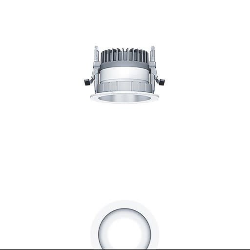 Plafonnier encastré à LED R100 (luminaire complet), avec une distribution lumineuse symétrique et extensive de la lumière (69 °), une efficacité maximale du luminaire, une technique d'éclairage downlight optimale ; une grande durabilité en raison d'une structure modulaire maximale continue et de composants échangeables. Module LED interchangeable, Rendu des couleurs Ra > 90 (R9 > 50), température de couleur 4000 K ; Tolérance de la couleur (MacAdam intial): 2 ; Puissance du luminaire: 14,4 W ; Flux lumineux du luminaire: 1760 lm ; ; Efficacité lumineuse du luminaire: 122 lm/W ; Durée de vie utile médiane: L80 100000 h à 25 °C + L90 50000 h à 25 °C, avec convertisseur LED enfichable séparé, Luminaire commutable on/off ; ; unité réflecteur haut de gamme se fixant sur la chambre lumineuse modulaire à LED grâce à la fermeture à baïonnette ; chambre lumineuse à LED extrêmement efficace intégrée dans la gestion thermique passive optimisée en Gestion thermique passive en aluminium recyclé injecté sous pression, réflecteur/collerette en Polycarbonate (PC) de grande qualité et résistant aux UV ; réflecteur : Lisse, aluminisé, argent mat brillant, sans irisation ; collerette blanc ; collerette d’encastrement en Polycarbonate (PC) gris ; degré de protection : IP54_IP20 ; câblage du luminaire sans halogène ; raccordement électrique : Bornier tripolaire à enfichage ; Câblage en dérivation possible ; ; tension secteur : 220-240 V / 0/50/60 Hz, compatible avec une batterie centralisée à courant continu de 220-240 V DC ; ; Montage rapide sans outil à l'aide de clips de fixation anti-dérapants pour épaisseurs de plafond de 1 à 40 mm ; montage rapide sans outil de l'unité d'éclairage à l’aide d'une fermeture à baïonnette, découpe de plafond : 100 mm , profondeur d'encastrement : 100 mm pour des épaisseurs de plafonds comprises entre 1 et 15 mm ; 110 mm pour des épaisseurs de plafond comprises entre 1 et 25 mm ; 130 mm pour des épaisseurs de plafonds comprises entre 1 et 40 mm ; poids : 0,42 kg ; ;Faible profondeur d'encastrement lors d’une utilisation dans un espace réduit dans le plafond.