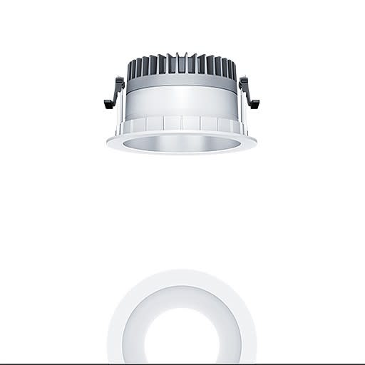 Plafonnier encastré à LED R150 (luminaire complet), avec Distribution lumineuse symétrique et extensive de la lumière (70 °), une efficacité maximale du luminaire, une technique d'éclairage downlight optimale ; une grande durabilité en raison d'une structure modulaire maximale continue et de composants échangeables. Module LED interchangeable, Distribution lumineuse symétrique et extensive de la lumière, Rendu des couleurs Ra > 80, température de couleur 3000 K ; Tolérance de la couleur (MacAdam intial): 2 ; Puissance du luminaire: 21,6 W ; Flux lumineux du luminaire: 2850 lm ; ; Efficacité lumineuse du luminaire: 132 lm/W ; Durée de vie utile médiane: L80 100000 h à 25 °C + L90 50000 h à 25 °C, avec convertisseur LED enfichable séparé, Luminaire commutable on/off ; ; unité réflecteur haut de gamme se fixant sur la chambre lumineuse modulaire à LED grâce à la fermeture à baïonnette ; chambre lumineuse à LED extrêmement efficace intégrée dans la gestion thermique passive optimisée en Gestion thermique passive en aluminium recyclé injecté sous pression, réflecteur/collerette en Polycarbonate (PC) de grande qualité et résistant aux UV ; réflecteur : Lisse, aluminisé, argent mat brillant, sans irisation ; ; collerette : blanc ; collerette d’encastrement en Polycarbonate (PC) ; blanc ; degré de protection : IP54_IP20 ; ; câblage du luminaire sans halogène ; raccordement : Bornier tripolaire à enfichage ; Câblage en dérivation possible ; ; tension secteur : 220-240 V / 0/50/60 Hz, compatible avec une batterie centralisée à courant continu de 220-240 V DC ; ; Montage rapide sans outil à l'aide de clips de fixation anti-dérapants pour épaisseurs de plafond de 1 à 40 mm (selon les modèles de luminaires) grâce à des barrettes de maintien interchangeables ; montage rapide sans outil de l'unité d'éclairage à l’aide d'une fermeture à baïonnette, découpe de plafond : 150 mm , profondeur d'encastrement : 100 mm; poids : 0,71 kg ; ;Pour des applications dans les bureaux conformément à la norme EN12464 avec UGR 19 (réflecteur alumisé)