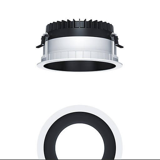 Plafonnier encastré à LED R200 (luminaire complet), avec Distribution lumineuse symétrique et extensive de la lumière (77 °), une efficacité maximale du luminaire, une technique d'éclairage downlight optimale ; une grande durabilité en raison d'une structure modulaire maximale continue et de composants échangeables. Module LED interchangeable, Distribution lumineuse symétrique et extensive de la lumière, Rendu des couleurs Ra > 90 (R9 > 50), température de couleur 3000 K ; Tolérance de la couleur (MacAdam intial): 2 ; Puissance du luminaire: 8 W ; Flux lumineux du luminaire: 690 lm ; ; Efficacité lumineuse du luminaire: 86 lm/W ; Durée de vie utile médiane: L80 100000 h à 25 °C + L90 50000 h à 25 °C, avec convertisseur LED enfichable séparé, Luminaire commutable on/off ; ; unité réflecteur haut de gamme se fixant sur la chambre lumineuse modulaire à LED grâce à la fermeture à baïonnette ; chambre lumineuse à LED extrêmement efficace intégrée dans la gestion thermique passive optimisée en Gestion thermique passive en polycarbonate thermoconducteur de grande qualité, réflecteur/collerette en Polycarbonate (PC) de grande qualité et résistant aux UV ; réflecteur : laqué noir ; ; collerette : blanc ; collerette d’encastrement en Polycarbonate (PC) ; blanc ; degré de protection : IP54_IP20 ; ; câblage du luminaire sans halogène ; raccordement : Bornier tripolaire à enfichage ; Câblage en dérivation possible ; ; tension secteur : 220-240 V / 0/50/60 Hz, compatible avec une batterie centralisée à courant continu de 220 V ; ; Montage rapide sans outil à l'aide de clips de fixation anti-dérapants pour épaisseurs de plafond de 1 à 40 mm (selon les modèles de luminaires) grâce à des barrettes de maintien interchangeables ; montage rapide sans outil de l'unité d'éclairage à l’aide d'une fermeture à baïonnette, découpe de plafond : 200 mm , profondeur d'encastrement : 120 mm; poids : 0,74 kg ; ;Pour des applications dans les bureaux conformément à la norme EN12464 avec UGR 19 (réflecteur alumisé)
