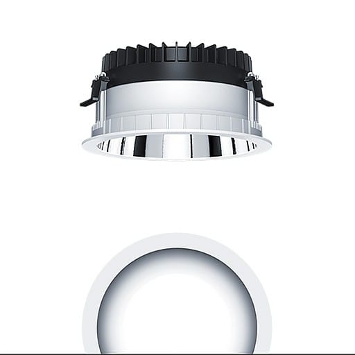 Plafonnier encastré à LED R200 (luminaire complet), avec Distribution lumineuse symétrique et extensive de la lumière (79 °), une efficacité maximale du luminaire, une technique d'éclairage downlight optimale ; une grande durabilité en raison d'une structure modulaire maximale continue et de composants échangeables. Module LED interchangeable, Distribution lumineuse symétrique et extensive de la lumière, Rendu des couleurs Ra > 90 (R9 > 50), température de couleur 3000 K ; Tolérance de la couleur (MacAdam intial): 2 ; Puissance du luminaire: 13,9 W ; Flux lumineux du luminaire: 1940 lm ; ; Efficacité lumineuse du luminaire: 140 lm/W ; Durée de vie utile médiane: L80 100000 h à 25 °C + L90 50000 h à 25 °C, avec convertisseur LED enfichable séparé, Luminaire pilotable via DALI (via DALI uniquement) ; avec fonction DC, réglable de 1 à 100 %, configurable NFC, compatible SwitchDIM ; unité réflecteur haut de gamme se fixant sur la chambre lumineuse modulaire à LED grâce à la fermeture à baïonnette ; chambre lumineuse à LED extrêmement efficace intégrée dans la gestion thermique passive optimisée en Gestion thermique passive en polycarbonate thermoconducteur de grande qualité, réflecteur/collerette en Polycarbonate (PC) de grande qualité et résistant aux UV ; réflecteur : aluminisé, haut brillant, sans irisation ; ; collerette : blanc ; collerette d’encastrement en Polycarbonate (PC) ; blanc ; degré de protection : IP54_IP20 ; ; câblage du luminaire sans halogène ; raccordement : Bornier à 5 pôles à enfichage ; Câblage en dérivation possible ; ; tension secteur : 220-240 V / 0/50/60 Hz, compatible avec une batterie centralisée à courant continu de 220-240 V DC ; ; Montage rapide sans outil à l'aide de clips de fixation anti-dérapants pour épaisseurs de plafond de 1 à 40 mm (selon les modèles de luminaires) grâce à des barrettes de maintien interchangeables ; montage rapide sans outil de l'unité d'éclairage à l’aide d'une fermeture à baïonnette, découpe de plafond : 200 mm , profondeur d'encastrement : 120 mm; poids : 0,77 kg ; ;Pour des applications dans les bureaux conformément à la norme EN12464 avec UGR 19 (réflecteur alumisé)