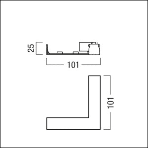 Jonction d´angle à 90° (mécanique) ; pour la jonction mécanique en angle (90°) de deux profilés conducteurs TBTS ; à utiliser pour l'alimentation des rails conducteurs (48 V) sur plusieurs faces, comme structure pour profilé à angle droit p. ex. ; pour plusieurs circuits TB TS (isolation galvanique) ; raccord en fonderie d'aluminium, cache en Polycarbonate (PC) blanc laqué ; poids : 0,04 kg ;Note : profilé en H : commander un raccord pour la partie supérieure et un pour la partie inférieure.