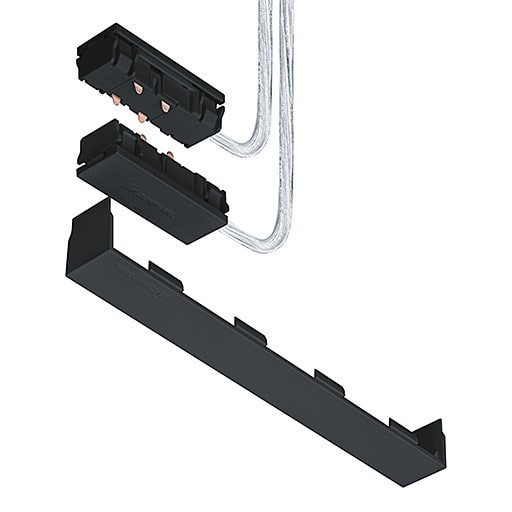 Jonction (électrique) avec alimentation ; composé d'un rail conducteur TBT (profilé en H) 2000 mm, connecteur, câblage de liaison avec clips à contact, câble d'alimentation (48 V) et cache ; jonction en tôle d'acier, câble de raccordement 3000 mm, cache en Polycarbonate (PC) noir laqué ; poids : 2,4 kg