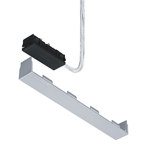 Jonction (électrique) avec alimentation ; composé d'un rail conducteur TBT (profilé en U) 2000 mm, connecteur, câblage de liaison avec clips à contact, câble d'alimentation (48 V) et cache ; jonction en tôle d'acier, câble de raccordement 3000 mm, cache en Polycarbonate (PC) argent laqué ; poids : 1,23 kg