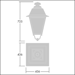 Lanterne de style 19e siècle avec 24 LED, courant commutable et optique Route étroite. Équipé d’un circuit de réduction de puissance, profil sélectionné par un interrupteur rotatif. Classe électrique II, IP66, IK08. Corps : aluminium fonderie, laqué noir (similaire à RAL9005) texturé. Boîtier : verre extra épais 4 mm,transparent. Livré avec LED 2 700 KDimensions : 436 x 436 x 725 mmPuissance du luminaire: 53 WPoids : 8,7 kgScx : 0.19 m²