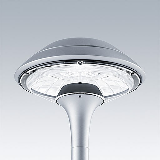 Plurio Direct : Lanterne LED décorative à montage top avec distribution Radialement symétrique. Driver avec 18 LED entraînés à 700mA. Classe électrique II, IP66, IK08. Base : coulé aluminium, thermopoudré gris argent. Chapeau : forme plat, aluminium, texturé gris argent. Diffuseur : anti-UV, transparent Polycarbonate (PC) avec prismes anti-éblouissement. Optique à lentille direct avec réflecteur interne Equipé d'un 50% circuit de réduction de puissance, qui entre en vigueur 3 heures avant et 5 heures après un minuit calculé. Il peut être désactivé à l'installation avec un interrupteur interne facilement accessible. Livré avec LED 4 000 K. Montage top sur mât de Ø 60mm. Émissions lumineuses vers le haut inférieures à 1 %.Dimensions : Ø601 x 487 mmPuissance du luminaire: 39 WFlux lumineux du luminaire: 4724 lmEfficacité lumineuse du luminaire: 121 lm/WPoids : 11 kgScx : 0.167 m²
