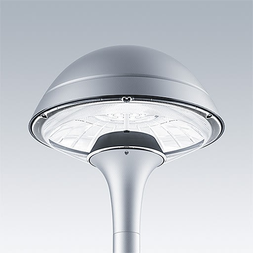Plurio Direct : Lanterne LED décorative à montage top avec distribution Radialement symétrique. Driver avec 18 LED entraînés à 350mA. Classe électrique II, IP66, IK08. Base : coulé aluminium, thermopoudré gris argent. Chapeau : forme rond, aluminium, texturé gris argent. Diffuseur : anti-UV, transparent Polycarbonate (PC) avec prismes anti-éblouissement. Optique à lentille direct avec réflecteur interne Equipé d'un 50% circuit de réduction de puissance, qui entre en vigueur 3 heures avant et 5 heures après un minuit calculé. Il peut être désactivé à l'installation avec un interrupteur interne facilement accessible. Livré avec LED 4 000 K. Montage top sur mât de Ø 60mm. Émissions lumineuses vers le haut inférieures à 1 %.Dimensions : Ø564 x 555 mmPuissance du luminaire: 21 WFlux lumineux du luminaire: 2577 lmEfficacité lumineuse du luminaire: 123 lm/WPoids : 9,5 kgScx : 0.191 m²