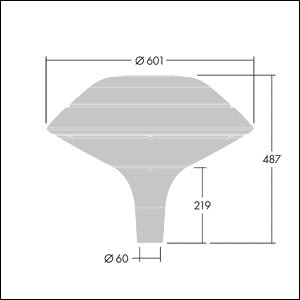 Plurio Indirect : Lanterne LED décorative à montage top avec distribution Radialement symétrique. Driver avec 24 LED entraînés à 350mA. Classe électrique II, IP66, IK08. Base : coulé aluminium, thermopoudré gris anthracite 900 sablé. Chapeau : forme plat, aluminium, texturé gris anthracite 900 sablé. Diffuseur : anti-UV, transparent Polycarbonate (PC) avec prismes anti-éblouissement. Optique à réflecteur indirect Equipé d'un 50% circuit de réduction de puissance, qui entre en vigueur 3 heures avant et 5 heures après un minuit calculé. Il peut être désactivé à l'installation avec un interrupteur interne facilement accessible. Livré avec LED 4 000 K. Montage top sur mât de Ø 60mm. Émissions lumineuses vers le haut inférieures à 1 %.Dimensions : Ø601 x 487 mmPuissance du luminaire: 26 WFlux lumineux du luminaire: 3261 lmEfficacité lumineuse du luminaire: 125 lm/WPoids : 11 kgScx : 0.167 m²