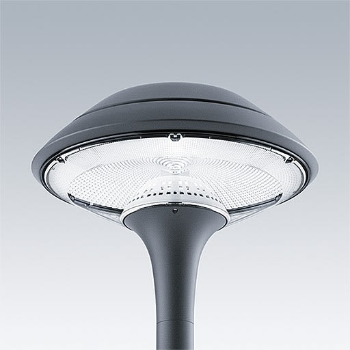 Plurio Indirect : Lanterne LED décorative à montage top avec distribution Radialement symétrique. Driver avec 24 LED entraînés à 600mA. Classe électrique II, IP66, IK08. Base : coulé aluminium, thermopoudré gris anthracite 900 sablé. Chapeau : forme plat, aluminium, texturé gris anthracite 900 sablé. Diffuseur : anti-UV, transparent Polycarbonate (PC) avec prismes anti-éblouissement. Optique à réflecteur indirect Equipé d'un 50% circuit de réduction de puissance, qui entre en vigueur 3 heures avant et 5 heures après un minuit calculé. Il peut être désactivé à l'installation avec un interrupteur interne facilement accessible. Livré avec LED 4 000 K. Montage top sur mât de Ø 60mm. Émissions lumineuses vers le haut inférieures à 1 %.Dimensions : Ø601 x 487 mmPuissance du luminaire: 44 WFlux lumineux du luminaire: 5206 lmEfficacité lumineuse du luminaire: 118 lm/WPoids : 11 kgScx : 0.167 m²