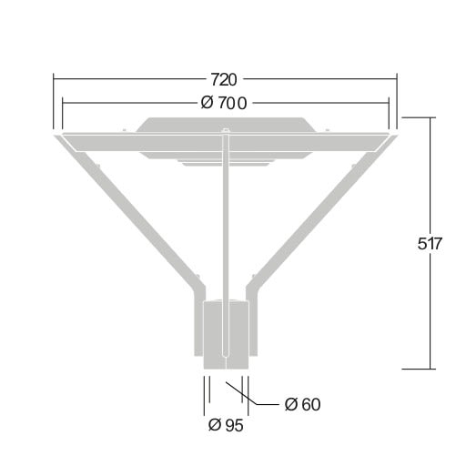 Lanterne décorative à montage top avec 18 LED entraînés à 700mA et une optique Confort symétrique radial avec un minimum de lumière vers le haut.. Classe électrique II, IP66, IK08. Base et bras : aluminium fonderie (EN AC-46000), chapeau : aluminium tourné, gris anthracite 900 sablé texturé. Diffuseur : Polycarbonate (PC) transparent. Fixations à visser : Acier inox. Pré-câblé avec 5 m de câble 1mm² HO5VVF Protection contre les surtensions : 10 kV en mode commun single pulse et 8 kV en mode commun multipulse; 6 kV en mode différentiel multipulse. Si un système DALI est connecté: 6 kV en mode mode commun et mode différentiel multipulse. Livré avec LED 3 000 KMontage top sur un mât de Ø 60 mm, longueur interne de l’emmanchement 100 mm.Dimensions : Ø700/720 x 500 mmPuissance du luminaire: 41 WPoids : 8,01 kgScx: 0.11 m²Efficacité lumineuse du luminaire: 114 lm/W