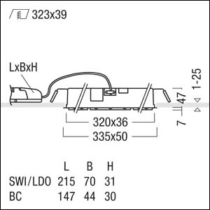 Plafonnier encastré à LED, compact, linéaire en tant que lèche-mur avec technologie de réflecteur miniaturisé à géométrie irrégulière liteCarve® brevetée, pour l'éclairage uniforme et asymétrique de surfaces verticales, le réflecteur liteCarve® dirige avec précision et sans lumière diffuse le flux lumineux 100 % indirect depuis un point lumineux LED vers la surface verticale ; avec 9 têtes d'éclairage miniature individuelles en disposition linéaire ; lampe : 30W LED1400-930 ; Distribution photométrique LÈCHE-MUR ; réflecteur : argenté avec bord noir, grand brillant ; Rendu des couleurs Ra > 90, température de couleur 3000 K (blanc chaud) ; Tolérance de la couleur (MacAdam intial): 2 ; Flux lumineux du luminaire: 1399 lm, Efficacité lumineuse du luminaire: 47 lm/W ; durée de vie: après 50000h 90% du flux lumineux initial ; modèle complet comprenant le luminaire et l'unité à ballasts séparée, Luminaire pilotable via DALI (via DALI uniquement) ; refroidissement passif par gestion thermique innovante brevetée ; corps en fonderie d'aluminium, noir laqué ; unité réflecteur en Polycarbonate (PC) en deux éléments : tête aluminisé, grand brillant / pied carré avec bord décoratif ; luminaire câblé sans halogène ; raccordement plug & play entre l'unité luminaire et le ballast ; Puissance du luminaire: 30 W ; raccordement : Bornier à 5 pôles à enfichage ; possibilité de câblage traversant ; tension secteur : 220-240V/ 50/60Hz ; version compatible avec unité de batteries centralisée 220 V DC selon EN 60598-2-22 ; montage avec clips de fixation pour plafonds de 1-25 mm d'épaisseur ; découpe du plafond : 39x323mm, profondeur d'encastrement : 100mm + épaisseur du plafond ; poids : 1,01 kg ;Note : possibilité de commander en option via mySUPERSYSTEM INTEGRAL différentes combinaisons de couleur (personnalisation du design) des différents éléments ;Note : distance optimale entre le luminaire et la surface verticale à éclairer : 1/3 de la hauteur d'installation