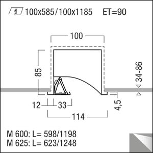 Lèche-murs apparent à LED avec optique réflecteur asymétrique pour l'éclairage de murs, de tableaux et de corridor ; Puissance du luminaire: 20,1 W, Luminaire pilotable via DALI avec convertisseur à LED ; durée de vie des LED de 50000 h jusqu'à une diminution du flux lumineux à 95 % de la valeur initiale. Tolérance de la couleur (MacAdam intial): 3. Flux lumineux du luminaire: 2200 lm, Efficacité lumineuse du luminaire: 109 lm/W. Rendu des couleurs Ra > 80, température de couleur 4000 K. À distribution lumineuse asymétrique dans le sens transversal du luminaire ; guidage du flux basé sur l'optique à réflecteur mat anodisé avec sortie du flux asymétrique définie du lèche-murs pour un éclairage homogène des murs et des tableaux avec transition douce en périphérie ; sans lumière en retour ; optique primaire efficace pour une résolution homogène des points lumineux à LED et une qualité remarquable de la lumière. Corps apparent étroit en tôle d'acier profilé, thermolaqué blanc ; connecteur enfichable à 5 pôles. Pour des plafonds avec rail porteur masqué ou visible et pour des ouvertures d'encastrement découpées. Épaisseur minimale de plafond requise : 34 mm (pourplus d'informations, se reporter à la notice de montage) ; possibilité de branchement en dérivation ; luminaire prêt à raccorder, Luminaire avec câble exempt d'halogène. Fourni avec la feuille protectrice. Modul : 600 ; Dimensions : 598 x 114 x 85 mm, poids : 2,1 kg