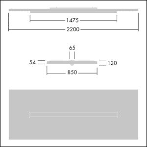 Une structure architecturale suspendu incorporant un luminaire LED directe/indirecte. non gradable Electronique,. Classe électrique I, IP20. Structure et cadre du luminaire : aluminium. Optique : acrylique plat. Fourni avec une fiche Wieland à 6 pôles sur un câble à 6 fils de 3,4 m et une prise Wieland à 6 pôles montée sur un panneau, pour un passage en coupure. Livré avec les câbles de suspension. Livré avec LED 4 000 K.Dimensions : 2200 x 850 x 100 mmPuissance du luminaire: 54,9 WFlux lumineux du luminaire: 6300 lmEfficacité lumineuse du luminaire: 115 lm/WPoids : 23,7 kg