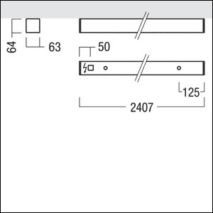Luminaire apparent à LED étroit avec optique alvéolaire mat, Puissance du luminaire: 64,1 W LED, ballast électronique avec convertisseur à LED. Durée de vie des LED 50000 h jusqu'à une diminution du flux lumineux à 90 % de la valeur initiale. Tolérance de la couleur (MacAdam intial): 3. Flux lumineux du luminaire: 8340 lm, Efficacité lumineuse du luminaire: 130 lm/W.Rendu des couleurs Ra > 80, température de couleur 4000 K. Guidage du flux avec la technologie très performante des alvéoles sur les LED ajoutée à l'optique primaire pour la résolution des points lumineux. Modules en matière composite de qualité métallisée sous vide en aluminium extrapur et couche de protection en SiO2. Caractéristique photométrique à défilement selon la norme EN 12464-1:2011, avec L65 <1500 cd/m² sur 65° sur le pourtour et UGR < 19 pour les postes de travail informatisés. Système optique fermé avec protection contre les contacts accidentels des modules à LED empêchant une dégradation par décharge électrostatique. Corps du luminaire thermopoudré en profilé d'aluminium extrudé à section carrée visible, parties frontales en aluminium injecté à vis masquées, peintes dans la teinte du luminaire, argent. Luminaire avec câble exempt d'halogène Dimensions : 2407 x 63 x 64 mm. Poids : 5,4 kg.