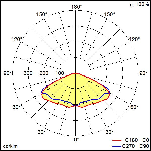 dépréciation flux lumineux, durée d'utilisation moyenne 100 000h, temp.25 °C: