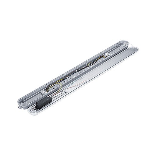 Luminaire à LED IP65 étanche à l'humidité avec diffuseur à structure opale pour une installation à l’intérieur et à l’extérieur dans un endroit couvert. Conception innovante avec des crosses coulissante extra-longues (400 mm) pour une installation aisée ; un luminaire donc idéal pour la rénovation. Fabriqué en polycarbonate de grande qualité (stabilisé aux UV), design épuré, sans clip et offrant un accès aisé et sécurisé au convertisseur. Équipé de deux bornes à 5 pôles pour un câblage traversant (terre, N, L1, L2, L3). Flux lumineux global: 8600 lm, Puissance du luminaire: 72 W, Efficacité lumineuse du luminaire: 119 lm/W, CCT : 4000 K. Durée de vie : 50 000 h @L80. Rendu des couleurs : IRC > 80, Tolérance de la couleur (MacAdam intial): 4, Résistance aux impacts : IK08. Installation sans aucun outil, compatible BESA. Accessoires disponibles : kit d'urgence Plug&Play pour une commutation en mode d'urgence de 3 heures (autotest et test manuel) et kit de suspension. Package de lumens paramétrables sur site en 3 étapes FLEX1 : FLEX2 : 6300 lm (50W) FLEX3 : 4200 lm (33W)). Pour plus d’informations sur le paramétrage de la puissance, veuillez vous rendre sur le site www.THORNeco.com. Dimensions : 1535 x 94 x 76 mm, poids : 1,95 kg.