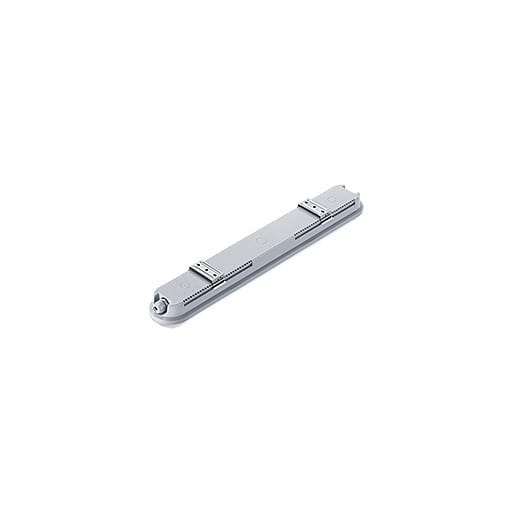 Luminaire à LED IP65 étanche à l'humidité avec diffuseur à structure opale pour une installation à l’intérieur et à l’extérieur dans un endroit couvert. Conception innovante avec des crosses coulissantes extra-longues (200 mm) pour une installation aisée ; un luminaire donc idéal pour la rénovation. Fabriqué en polycarbonate de grande qualité (stabilisé aux UV), design épuré, sans clip et offrant un accès aisé et sécurisé au convertisseur. Flux lumineux global: 2200 lm, Puissance du luminaire: 18 W, Efficacité de la lampe: 122 lm/W, CCT : 4000 K, durée de vie : 50 000 h @L80, rendu des couleurs : IRC > 80. Tolérance de la couleur (MacAdam intial): 4, Résistance aux impacts : IK08. Installation sans aucun outil, compatible BESA. Accessoires disponibles : Kit de suspension. Package de lumens paramétrables sur site en 3 étapes (FLEX1 : 2200 lm (18W), FLEX2 : 1500 lm (12W), FLEX3 : 1000 lm (8W)). Pour plus d’informations sur le paramétrage de la puissance, veuillez vous rendre sur le site www.THORNeco.com. Dimensions : 635 x 94 x 76 mm, poids : 0,8 kg.