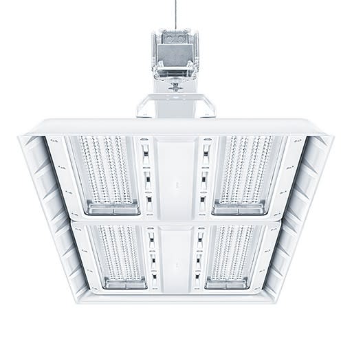 Luminaire industriel à LED Puissance du luminaire: 296 W, avec convertisseur à LED, Luminaire pilotable via DALI (via DALI uniquement), boîtier en tôle d'acier extrêmement résistant et embouti, thermopoudré blanc. Vasque transparente CHEMO (CH) avec une grande résistance aux fissures sous contrainte / aux chocs et aux produits chimiques, en particulier aux huiles et aux solvants. Durée de vie des LED 100000 h jusqu'à une diminution du flux lumineux à 85 % de la valeur initiale. Même lors d’une utilisation à la température ambiante la plus élevée et en raison de la très grande qualité des LED, leur durée de vie est encore de 70 000 h jusqu'à une baisse du flux lumineux à 70% de la valeur initiale.. Tolérance de la couleur (MacAdam intial): 2. Flux lumineux du luminaire: 38440 lm, Efficacité lumineuse du luminaire: 130 lm/W Rendu des couleurs Ra > 80, température de couleur 3000 K. Contrôle de l’éblouissement : UGR < 25 suivant la norme EN 12464:2011. Système optique à lentille fermé. Lentilles avec structure diagonale à calottes pour une efficacité maximale Luminaire à répartition symétrique extensive (wide beam). Flexibilité à 100 %, installation mécanique et électrique sans outil sur le rail porteur TECTON, au moyen de la technique CLIX et grâce à deux verrous quart de tour rapportés latéralement sur le rail, système complet avec degré de protection IP20. LED - Classe de risque RG0 (IEC/EN 62471), câblage du luminaire sans halogène et sans silicone. Note : Veuillez contacter votre conseiller pour toute spécification lors d’une utilisation dans des atmosphères ambiantes soumises à des contraintes chimiques, à une humidité de l’air élevée ou soumise à de fortes condensations ainsi que lors de fortes fluctuations de températures. Classe de protection : SC1 ; degré de protection : IP20 ; Température ambiante : -20°C à +25°C ; Dimensions : 1045 x 470 x 140 mm. Poids : 9,7 kg..