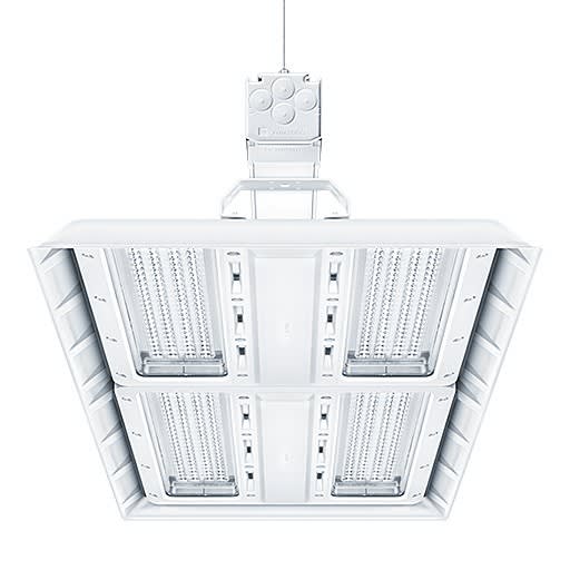 Luminaire industriel à LED Puissance du luminaire: 296 W, avec convertisseur à LED, Luminaire pilotable via DALI (via DALI uniquement), boîtier en tôle d'acier extrêmement résistant et embouti, thermopoudré blanc. Vasque en polycarbonate (PC) haut de gamme, résistant aux chocs et stabilisé aux UV, pour des applications dans les secteurs de l'industrie et de la logistique. Durée de vie des LED de 100000 h jusqu'à une diminution du flux lumineux à 85 % de la valeur initiale. Tolérance de la couleur (MacAdam intial): 2. Flux lumineux du luminaire: 43000 lm, Efficacité lumineuse du luminaire: 145 lm/W Rendu des couleurs Ra > 80, température de couleur 4000 K Contrôle de l’éblouissement : UGR < 25 suivant la norme EN 12464:2011. Système optique à lentille fermé. Luminaire à répartition symétrique extensive (wide beam) Lentilles avec structure diagonale à calottes pour une efficacité maximale. Positionnement 100% flexible sur toute la longueur du chemin lumineux. Installation mécanique et électrique sans outil sur le rail porteur TECTON IP64 grâce à deux verrous quart de tour rapportés latéralement sur le rail. LED - Classe de risque RG1 (IEC/EN 62471), câblage du luminaire sans halogène et sans silicone. Note : Veuillez contacter votre conseiller pour toute spécification lors d’une utilisation dans des atmosphères ambiantes soumises à des contraintes chimiques, à une humidité de l’air élevée ou soumises à de fortes condensations ainsi que lors de fortes fluctuations de températures. Classe de protection : SC1 ; degré de protection : IP64 ; Température ambiante : -20°C à +25°C ; Dimensions : 1054 x 470 x 149 mm. Poids : 11,2 kg.