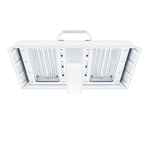Luminaire industriel à LED Puissance du luminaire: 83,8 W, avec convertisseur à LED, Luminaire avec détecteur de mouvement et CorridorFUNCTION, boîtier en tôle d'acier extrêmement résistant et embouti, thermopoudré blanc. Vasque en polycarbonate (PC) haut de gamme, résistant aux chocs et stabilisé aux UV, pour des applications dans les secteurs de l'industrie et de la logistique. Durée de vie des LED 100000 h jusqu'à une diminution du flux lumineux à 85 % de la valeur initiale. Même lors d’une utilisation à la température ambiante la plus élevée et en raison de la très grande qualité des LED, leur durée de vie est encore de 100 000 h jusqu'à une baisse du flux lumineux à 75 % de la valeur initiale.. Tolérance de la couleur (MacAdam intial): 2. Flux lumineux du luminaire: 13260 lm, Efficacité lumineuse du luminaire: 158 lm/W Rendu des couleurs Ra > 80, température de couleur 4000 K. Contrôle de l’éblouissement : UGR < 25 suivant la norme EN 12464:2011. Système optique à lentille fermé. Lentilles avec structure diagonale à calottes pour une efficacité maximale Luminaire à répartition ultra-extensive (Very Wide Beam). Câble d’alimentation prémonté de 2 m avec 5 x 1 mm² pour des températures très élevées en permanence (sans halogène, ignifuge). Résistance aux vibrations (EN 60598-1:2015 / IEC 60598-1:2017 Ed. 8.1). LED - Classe de risque RG0 (IEC/EN 62471), câblage du luminaire sans halogène et sans silicone. Note : Veuillez contacter votre conseiller pour toute spécification lors d’une utilisation dans des atmosphères ambiantes soumises à des contraintes chimiques, à une humidité de l’air élevée ou soumise à de fortes condensations ainsi que lors de fortes fluctuations de températures. Classe de protection : SC1 ; degré de protection : IP66 ; Température ambiante : -20°C à +55°C ; Dimensions : 540 x 470 x 116 mm. Poids : 5,1 kg..