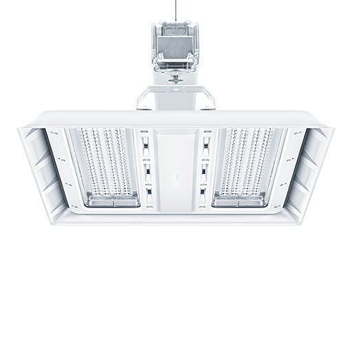 Luminaire industriel à LED Puissance du luminaire: 148 W, avec convertisseur à LED, Luminaire pilotable via DALI (via DALI uniquement), boîtier en tôle d'acier extrêmement résistant et embouti, thermopoudré blanc. Vasque en polycarbonate (PC) haut de gamme, résistant aux chocs et stabilisé aux UV, pour des applications dans les secteurs de l'industrie et de la logistique. Durée de vie des LED 100000 h jusqu'à une diminution du flux lumineux à 85 % de la valeur initiale. Même lors d’une utilisation à la température ambiante la plus élevée et en raison de la très grande qualité des LED, leur durée de vie est encore de 100 000 h jusqu'à une baisse du flux lumineux à 70% de la valeur initiale.. Tolérance de la couleur (MacAdam intial): 2. Flux lumineux du luminaire: 21500 lm, Efficacité lumineuse du luminaire: 145 lm/W Rendu des couleurs Ra > 80, température de couleur 4000 K. Contrôle de l’éblouissement : UGR < 25 suivant la norme EN 12464:2011. Système optique à lentille fermé. Lentilles avec structure diagonale à calottes pour une efficacité maximale Luminaire à répartition symétrique extensive (wide beam). Flexibilité à 100 %, installation mécanique et électrique sans outil sur le rail porteur TECTON, au moyen de la technique CLIX et grâce à deux verrous quart de tour rapportés latéralement sur le rail, système complet avec degré de protection IP20. LED - Classe de risque RG1 (IEC/EN 62471), câblage du luminaire sans halogène et sans silicone. Note : Veuillez contacter votre conseiller pour toute spécification lors d’une utilisation dans des atmosphères ambiantes soumises à des contraintes chimiques, à une humidité de l’air élevée ou soumise à de fortes condensations ainsi que lors de fortes fluctuations de températures. Classe de protection : SC1 ; degré de protection : IP20 ; Température ambiante : -20°C à +25°C ; Dimensions : 540 x 470 x 140 mm. Poids : 5,4 kg..