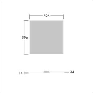 Une dalle encastrée LED avec un cadre de 14 mm d'épaisseur. Driver, gradable DALI. Classe électrique II, IP65, IK06. Corps: tôle d'acier, blanc (similaire à RAL9016). Diffuseur: opale. Livré avec LED 4 000 K.Dimensions : 596 x 596 x 14 mmPuissance du luminaire: 33 WFlux lumineux du luminaire: 3800 lmEfficacité lumineuse du luminaire: 115 lm/WPoids : 4,2 kg