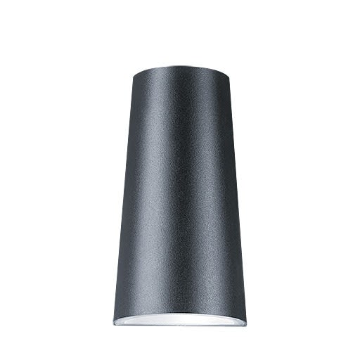 Luminaire mural, HAUT et downlight IP65, en forme de cône demi-rond, pour des applications à l’extérieur, avec boîtier en aluminium noir moulé sous pression. Température de couleur 3000 K (blanc chaud) avec un indice de rendu des couleurs Ra 80, durée de vie des LED : 50 000 h jusqu'à une diminution du flux lumineux à 80 % de la valeur initiale. Puissance du luminaire: 8 W ; 500 lumens @ 63 lm/W ; IK04 ; IP65 ; 230 V. Borne de connexion rapide pour des câbles jusqu'à 2,5 mm² permettant une installation rapide. Dimensions : 94 x 160 x 58 mm, poids : 0,52 kg.