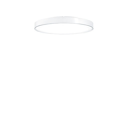 Luminaire rond à LED décoratif diffus avec vasque opale pour le montage apparent au plafond/mur, Puissance du luminaire: 41,2 W, Commande sans fil contrôlée par appli avec Bluetooth® 4.x - basicDIM Wireless avec convertisseur à LED ; durée de vie des LED de 50000 h jusqu'à une diminution du flux lumineux à 90 % de la valeur initiale. Tolérance de la couleur (MacAdam intial): 3. Flux lumineux du luminaire: 5780 lm, Efficacité lumineuse du luminaire: 140 lm/W. Rendu des couleurs Ra > 80, température de couleur 4000 K. Corps en aluminium, blanc laqué. Vasque en matière plastique, opale en Polyméhylméhacrylate à surface satinée, fixée sur le cadre. Possibilité de montage en applique. La faible composante de lumière indirecte éclaire le plafond et renforce l'effet de flottement. Luminaire avec câble exempt d'halogène. Disposition des luminaires : commande mobile à max. 15 m du luminaire, distance entre luminaires 4 m (milieu). Définition radio: basicDIM Wireless - Bluetooth® 4.x. Fréquence radio: 2,4...2,483 GHz. Puissance d'émission radio: + 4dBm. Dimensions : Ø590 x 85 mm poids : 5,8 kg Résistance aux impacts : IK03.