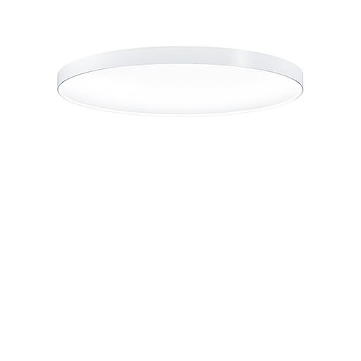 Luminaire rond à LED décoratif à lumière diffuse avec cache LRO pour le montage apparent au plafond ou au mur. Puissance du luminaire: 68,8 W, Luminaire pilotable via DALI avec convertisseur à LED ; durée de vie des LED de 50000 h jusqu'à une diminution du flux lumineux à 90 % de la valeur initiale. Tolérance de la couleur (MacAdam intial): 3. Flux lumineux du luminaire: 8760 lm, Efficacité lumineuse du luminaire: 127 lm/W. Rendu des couleurs Ra > 80, température de couleur 3000 K. Corps en aluminium, blanc laqué. Cache en matière plastique Polyméhylméhacrylate avec UGR <19 LRO optique à luminance réduite à surface satinée, fixé sur le cadre. Montage en applique possible. La faible composante indirecte illumine le plafond/mur et renforce l'impression d'apesanteur. Convertisseur électronique à LED pour la commande via DALI fourni. Luminaire avec câble exempt d'halogène Dimensions : Ø870 x 85 mm poids : 10 kg Résistance aux impacts : IK03.